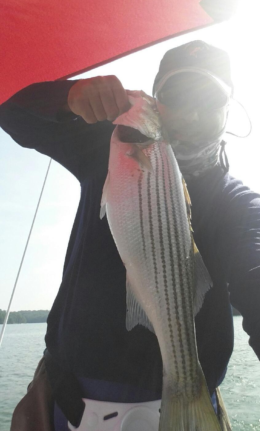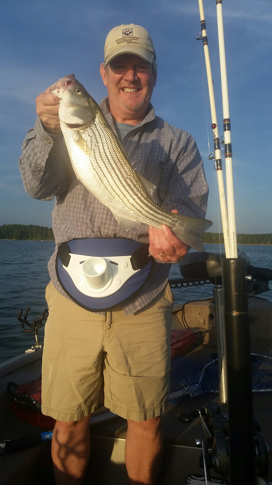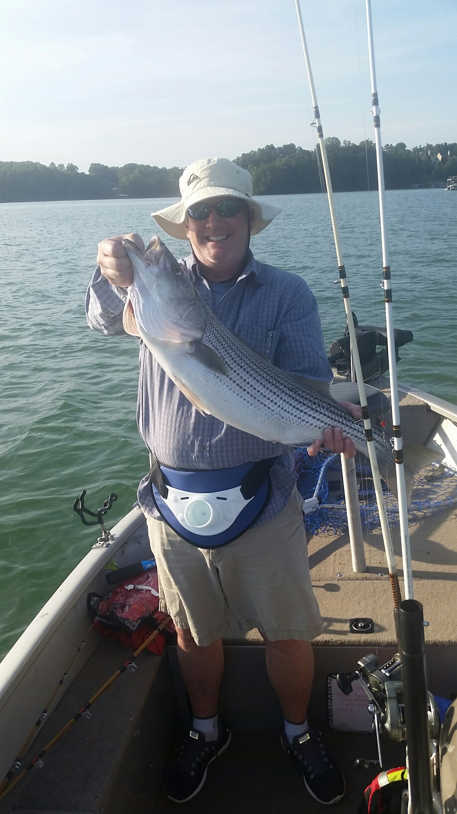 Team Lanier still managed to catch 5 stripers and a spotted bass Saturday keeping out of the way of the speed boats for charity. We fished in Flat Creek and Balus using downlines, lead core and power reeling. Mark Huffman, a new member with the Lanier Striper Club, was taking advantage of the club’s Mentoring program today fishing with Steve Scott. We had a blast. Mark said he learned a lot.