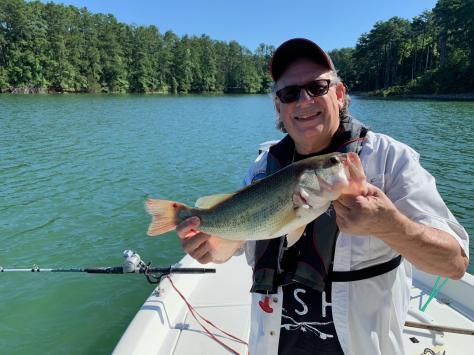 We had a late start Thursday but managed to get on the Tugaloo River by 11am launching at Stephens County park. We were supposed to head north about 3 miles up river, but that was for the early morning bite. Being later in the day Don & I decided that since we missed the morning bite we would head about three miles south to the wider river curves at a place where we have done well in past years. Well when we got there we did not see any marks or bait. We put out a spread anyway which consisted of Planer Boards, Carolina Rigged Downlines, Freelines, Directional Bobbers and a mini Mack behind the big motor. We kept our speed between .5 and .7 mph. We got several bites on the Downlines but did not land any fish. We had a quick bite of lunch on the boat thanks to Charles bringing smoked ham sandwiches, chips and chocolate cookies. After lunch we decided to head up river to Prather Bridge where we did well in the previous week. Even though the water depth was 17 feet deep at best and the water temperature was 58 degrees we were marking fish everywhere. We put out the same spread once again. We missed a few more and realized that they had been only hitting the Carolina Rigged Downline all day. So we dumped the Planer Boards and Freelines and set out 6 Carolina Rigged Downlines. The power plant had begun generating but only about 2 miles an hour and with no wind we had out first Striper in the boat in minutes. This was about 4pm. A few minutes later we boated a nice Spotted Bass. We didn’t have much time left to fish and now knowing that the fish were wanting Bluebacks at a speed of 1.2 mph we were running out of time, and with the 5 mph gusty wind it became difficult to control the boat. We started getting snagged on most of the rods so we decided to call it a day. Charles 3-28-2019