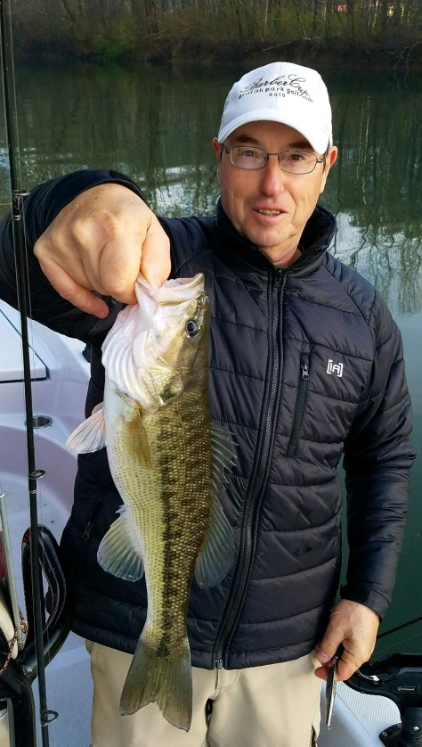 We had discovered that the pattern to catch fish today was fishing the mouths of the creeks.We fished an area of the river where two creeks entered from each side. Water temp was 50 degrees. We basically circled the area picking up a fish on each pass until the gusty wind showed up. We knew that is was time to leave as we could no longer control the boat under these gusts.