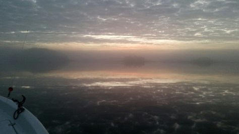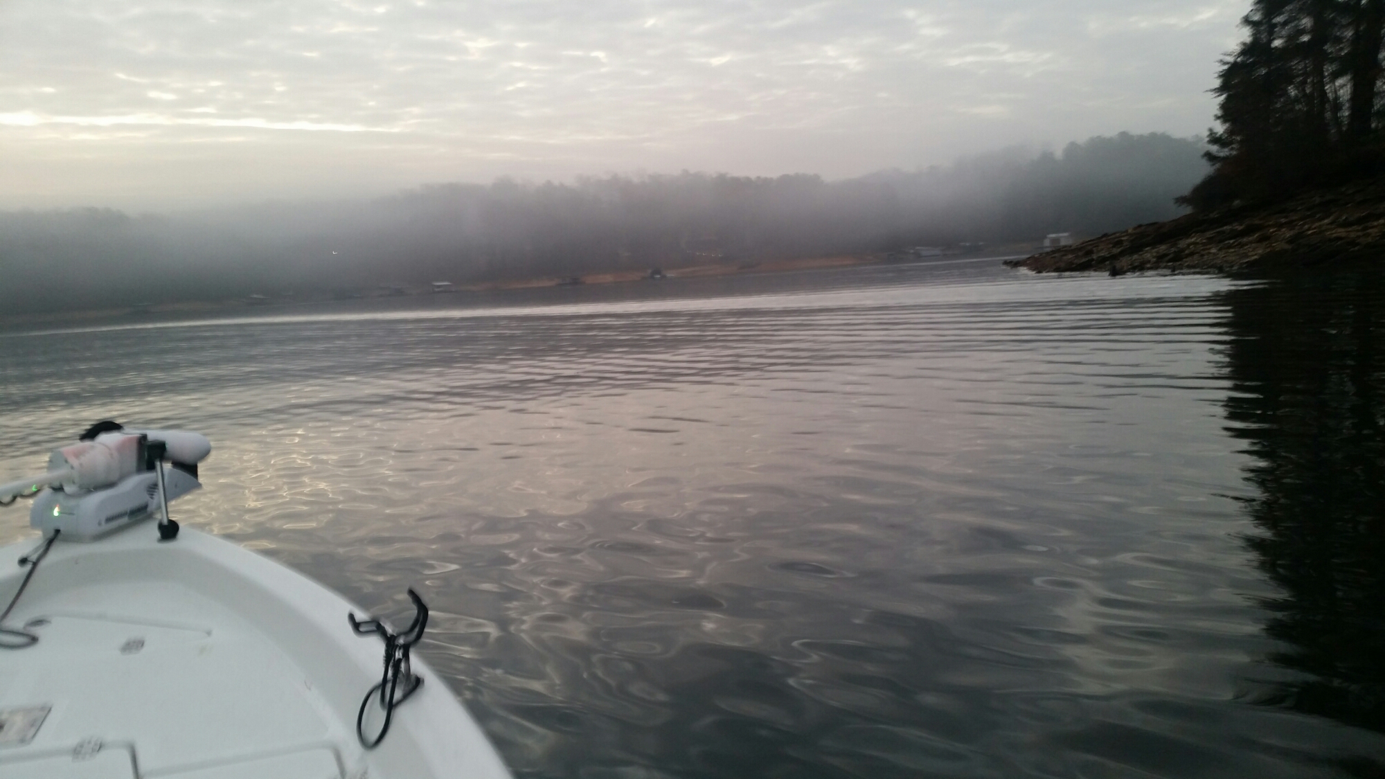 We chose to launch at the fifth ramp at Aqualand because there was water enough to access the courtesy dock and still be near the main channel saving time as we headed to Flat Creek. Well the dense fog curtailed that idea as we could only go 8 mph towards our starting position.